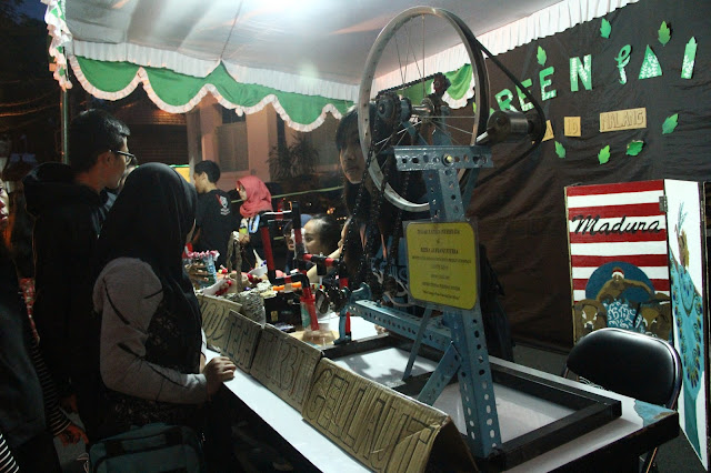 Aksi 19 Maret itu berjalan lancar dari mulai persiapan di sore harinya, alat-alat pameran yang tepat datangnya, serta guest star yang tidak molor-moloran. Sampai akhirnya hujan datang yang sedikit membuat pengunjung dan kami para volunteer kebingungan. Aksi tetap berjalan sampai jam menunjukkan pukul 20.30 WIB yang artinya sudah waktunya lampu dimatikan. Meskipun hujan, tapi selebrasi switch off gak terhalang kok, buktinya saja setelah lampu dimatikan perwakilan duta, Du Grup, dan DKP bersemangat untuk mengayuh pedal statis. Pedal statis itu semacam lampu yang akan nyala apabila di pedal, kaya lampu sepeda-sepeda mini gitu. Bedanya disini lampunya itu menggunakan lampu led yang dibentuk Indonesia dan kerangka bertuliskan 60+.